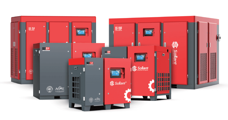 All Sollant compressor equipment is built on a robust platform and features advanced controllers along with high-efficiency screw elements. Our range of oil-lubricated screw air compressors serves as excellent all-in-one solutions for small and medium-sized workshops, and we also offer solutions for larger manufacturers, delivering energy cost savings of 30% to 35%.